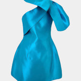 Robe stretch, évasée en trapèze. Coupe tendance avec manche bouffante. Couleur bleu. Idéal pour cocktail, mariage ou pour toutes vos grandes cérémonies. Manche ajustable à votre goût. Doublure intégrée. Livraison rapide.